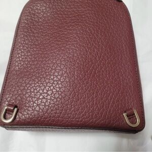 Chic and compact leather backpack. Features a rich plum color.