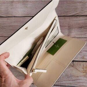 Kate Spade Leather Saffiano Phoenix Mikas Pond Tri-Fold Wallet Color Porcini