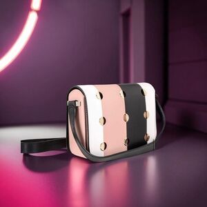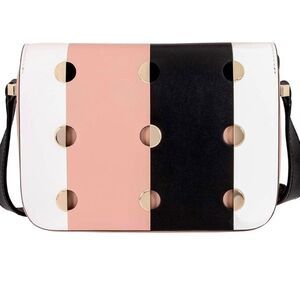 Kate Spade Nicola Mod Dot Ladies Small Black Multi Leather Shoulder Bag PXRUA362098. Retro-inspired twist on our bag crafted from smooth tri-color leather and gently structured for everyday use.