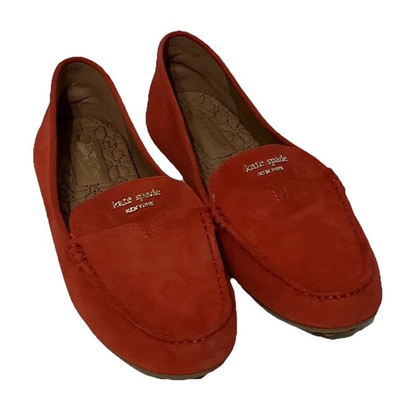 Kate Spade Leather Suede Deck Driver Loafers Womens 10 Coral Slip-On Shoes