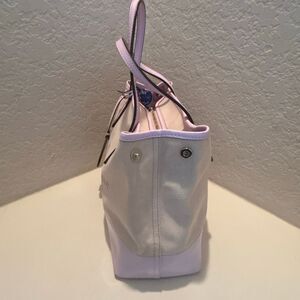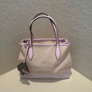 Kate Spade Leather Trim Canvas Tote Bag Natural Pink Logo Preppy Barbiecore