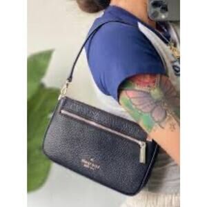 Kate Spade Leila Black Pebbled Leather Convertible Wristlet Hand Bag Clutch