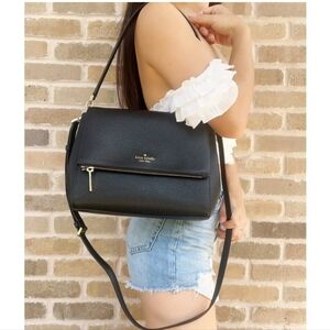 Kate Spade Leila Black Pebbled Leather Flap Shoulder Bag Extra Crossbody Strap