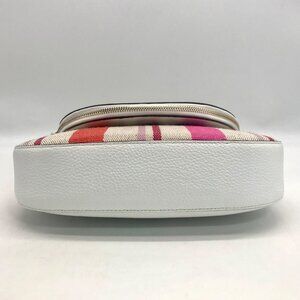 The Kate Spade Leila Striped Canvas Shoulder Bag exudes playful charm with its vibrant striped canvas design, offering a stylish accessory that adds a pop of color and personality to any ensemble.(4135-3LU-3.24)