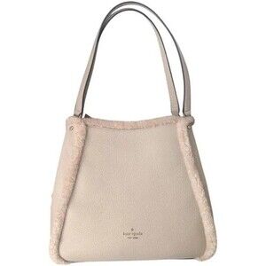 The Kate Spade Leila Triple Compartment Faux Shearling Double Handle Handbag is a stylish and versatile accessory suitable for various occasions including travel, casual outings, and business meetings. With a rectangular shape and medium size, this handbag features a solid beige exterior with pebbled leather and shearling materials, complemented by gold-plated hardware. The double handles in beige leather offer a chic and practical touch, while the zip and snap closures ensure your belongings are secure. Perfect for those looking for a fashionable yet functional handbag to elevate their everyday look.