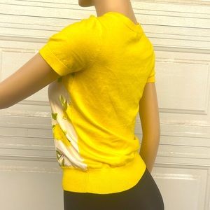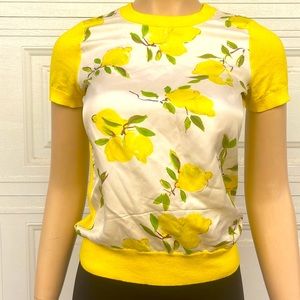 Kate Spade Lemon Yellow White Short Sleeve Silk Blouse Size XS