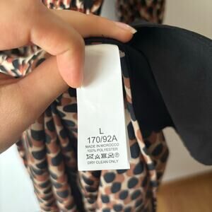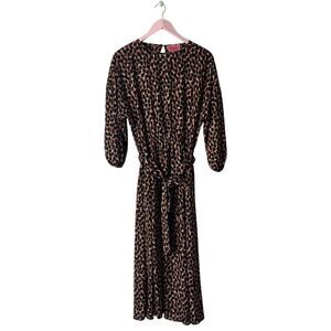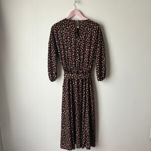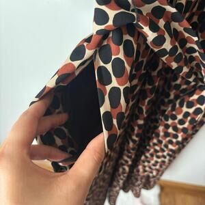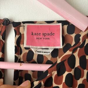 Super cute abstract brown/black/tan leopard print dress by Kate Spade. Ties around waist. Great preowned condition. Size large. Measurements in photos.