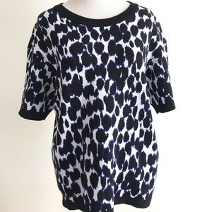Kate Spade Leopard Print Pullover Sweater Top Womens M Blue Knit Stretch Style: top - short sleeves - pullover - knit - see all pictures!! Brand: Kate Spade Color: blue, white Size: M Material: see pictures Measurements: see pictures This is a pre-owned item, please see all pictures, we try our best to show the nature and color of our items; expect some fading, signs of wear, pulling as this is a used item.
