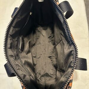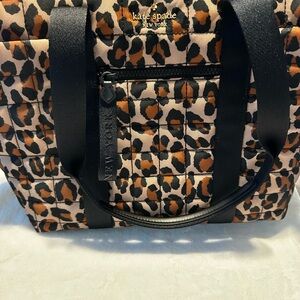 Chic tote featuring a bold leopard print. Black straps for easy carrying. Stylish and versatile.