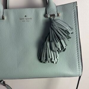 Kate Spade Light Blue Leather Tote w Twilley Large Tote Multiple Compartments