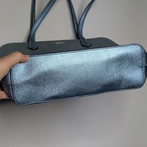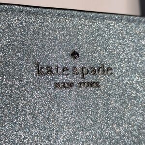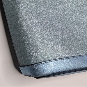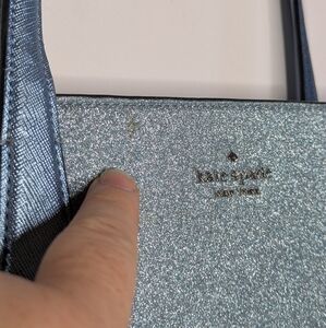 Kate Spade Light Blue Shimmery Glitter Tote Bag. Small stain on the top front and the back has staining and scratches spots (see photos)