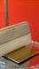 Elegant light gray wallet. Sleek design with zip closure. Perfect for everyday use. There is a pocket on the back. Interior is light gray with spades and circles throughout. There are 12 card slots. 2 cellphone compartments (Fits an iPhone 14 Plus), 1 zipper pocket and 2 bill compartments. All metal is gold-tone. Like new.