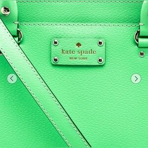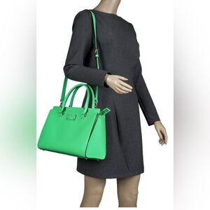 Spade Wellesley satchel is crafted from light green leather. It features dual top handles, a detachable shoulder strap and protective metal feet at the bottom. The zip top closure opens to a fabric lined interior that houses a slip pocket. Swing this beauty with all your fashionable outfits.