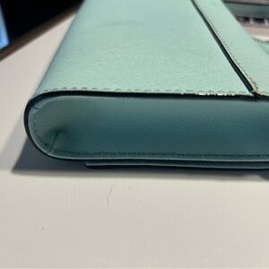 Elegant Kate Spade wristlet in light mint. Perfect for any occasion.