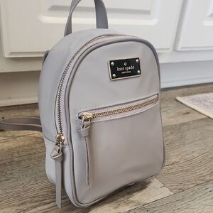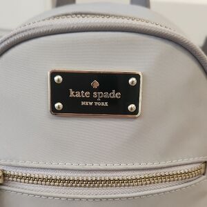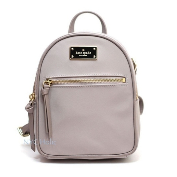Kate Spade Wilson Road Mini Bradley Backpack in a neutral/grey nylon material.