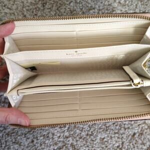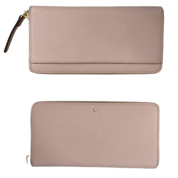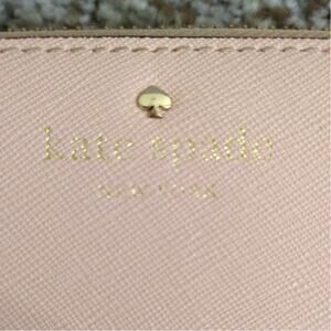 Chic and functional, this Kate Spade New York zip-around wallet in a soft light pink leather adds a touch of elegance to your everyday essentials. It features multiple card slots, a zippered coin pocket, and ample room for bills and receipts. This wallet is pre-owned and shows signs of wear—light corner wear and small marks on both interior and exterior (see photos). Still stylish and perfectly functional, it’s a great find for fans of classic Kate Spade design.