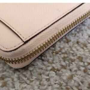 Kate Spade wallet, zip around wallet, light pink leather wallet, designer wallet, Kate Spade zip wallet, pebbled leather wallet, women's wallet, luxury wallet, pre-owned Kate Spade, classic wallet