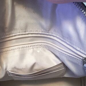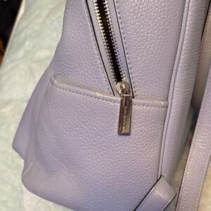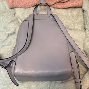 Elegant light purple backpack with front pocket. Sleek design by Kate Spade.
