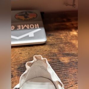 Laid something on shoe and left little indents as shown-may pop out now that they are not in a storage box