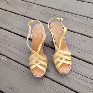 Kate Spade Lindsey Nude Leather Strappy Rainbow Espadrille Platform Sandals 7.5