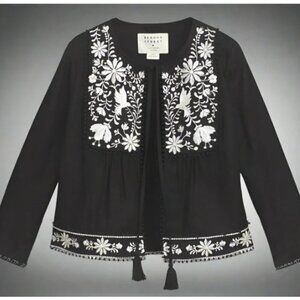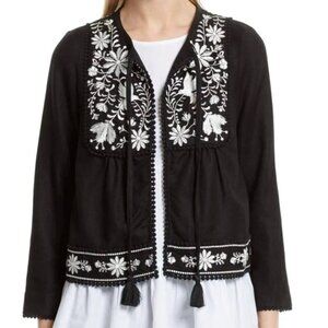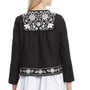 Kate Spade Linen Blend Crop Jacket Womens Medium Black Floral Embroidery Mexican