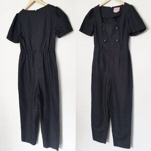Kate Spade Linen Blend Twill Black Jumpsuit Size 2 Double Breasted Button $328