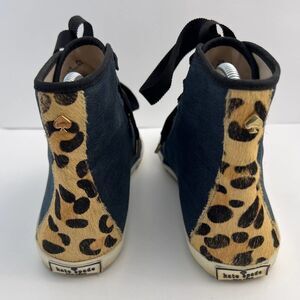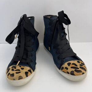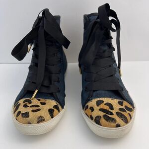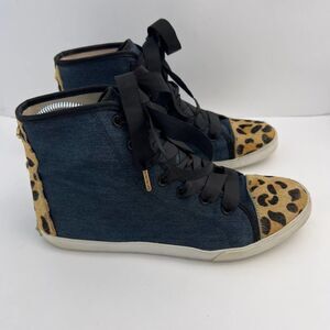 Kate Spade Linus Denim & Animal Print Calf Hair High Top Sneakers womens size 8