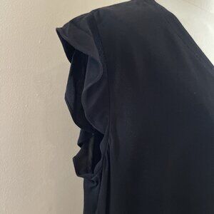 Kate Spade Live Colorfully Blouse Top Size L Black Ruffle Sleeve Minimalist