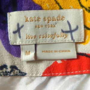 Kate Spade "Live colorfully" Floral Print Top. Body 100% Viscose. Lining 100% Polyester. Pleated neckline