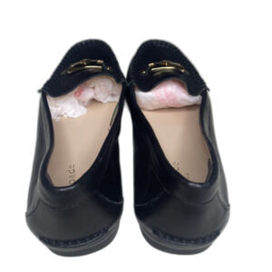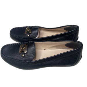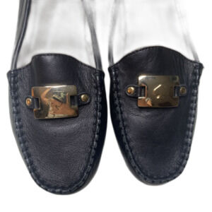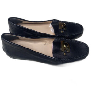 Kate Spade Loafers Size 6.5 Carmen Pebbled Leather Flex Slip On Flat Black Gold