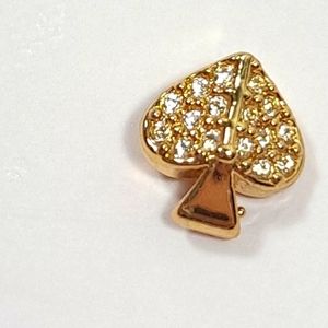 Gold with pave diamonds lock and Spade mismatched stud earrings by Kate Spade. Perfect accessory for everyday. Small enough for the 2nd hole ear piercing to complete the look with another pair of earrings. Asymmetrical heart and lock earrings with a Spade as the earring back.
