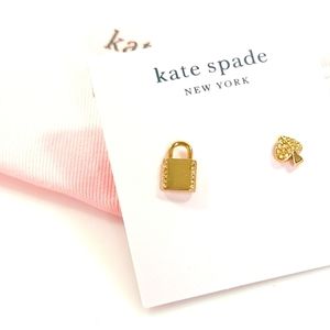 Kate Spade Lock & Spade Earrings Mismatch Stud NWT NEW Post Back Gold