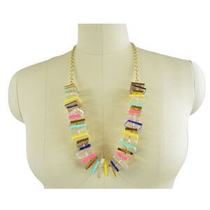 - A length of square beads in various colors accented with radiant spacers on a snake chain.
