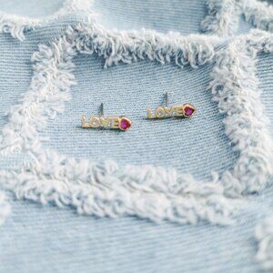 Kate Spade Love You Mom Gold Pink Mini Stud Earrings Trendy Jewelry