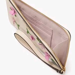 Kate Spade Lucy Floral 3D Flowers Medium L-Zip Wallet Wristlet New
