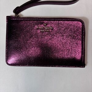 This shimmery purple wristlet from Kate Spade New York is perfect for fall and holiday outfits! Tags have been removed, but this has never been used.