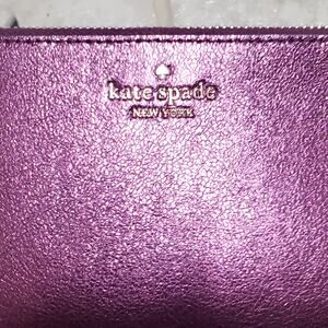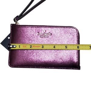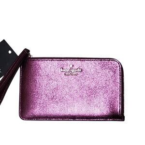 Kate Spade Lucy Small L-Zip Wristlet Dark Raspberry Metallic Leather New With Tags 6 in x 3.5 in.