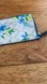 Elegant wristlet with vibrant blue and green floral pattern. Beige background enhances the design. Perfect for any occasion.