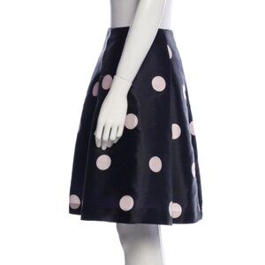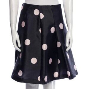 Kate Spade Lysa Navy with Pink Polka Dots Pleated Midi A-Line Skirt S $259