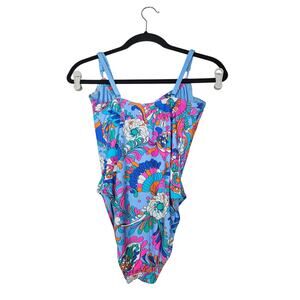 Kate Spade M Blue Floral One Piece Swimsuit Underwire Retro Preppy Coastal Beach