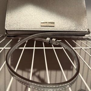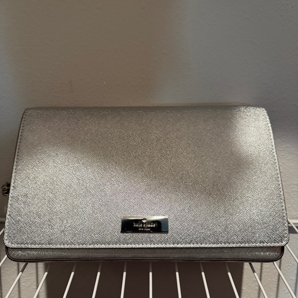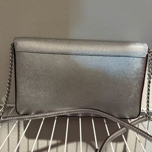 Metallic silver crossbody, worn twice excellent condition. Converts from crossbody to clutch.
