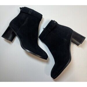 Amp up your style with these boots from Kate Spade New York, featuring a rounded to and a chunky block heel. In black suede with a bow at ankle with the Kate Spade signature metal spade logo. Size 5.5 with a 2.25 inch heel. Brand new without tags or original box, but boots were out on showroom floor and bottoms do some try on wear. Comes from a smoke free home. Retail cost $248