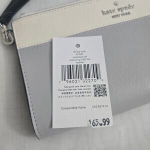 Kate Spade Madison Double Zip Wristlet NEW Platinum Grey Multi Saffiano Leather