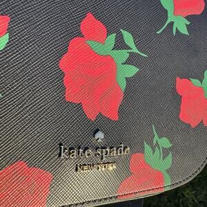 Kate Spade Madison Rose Toss Print Saddle Bag Crossbody Black Multi- NWT