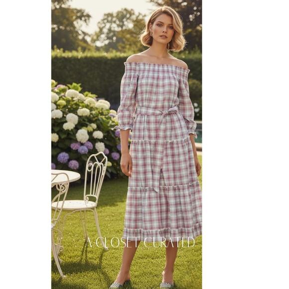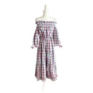 Kate Spade Madras Plaid Off Shoulder Maxi Dress Large