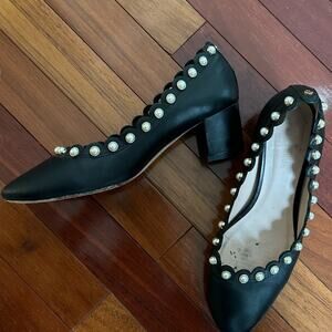 Kate Spade Maeve Black Pearl Studded Pumps Block Heel