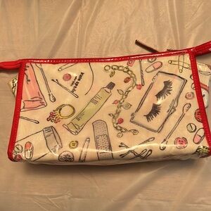 Kate Spade Make-Up bag. Red trim. Outside is in good condition. Inside has some make-up staining at the bottom. See last pic.