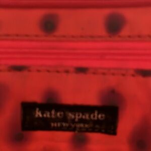 Kate Spade Make-Up bag. Red trim. Outside is in good condition. Inside has some make-up staining at the bottom. See last pic.