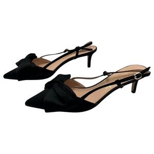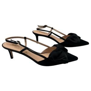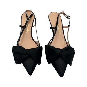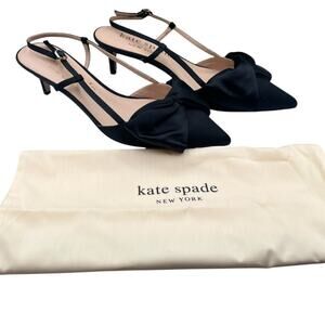 Kate Spade Marseille Bow Satin Pointed Toe Kitten Heels Pumps Black Size 10B