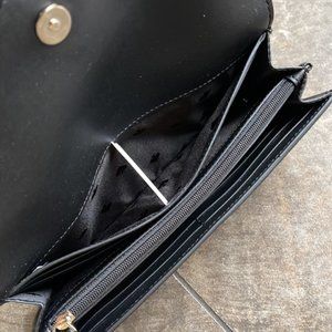 interior: 10 credit card slots, 2 slip pockets, zip coin compartment, dual gusset compartments